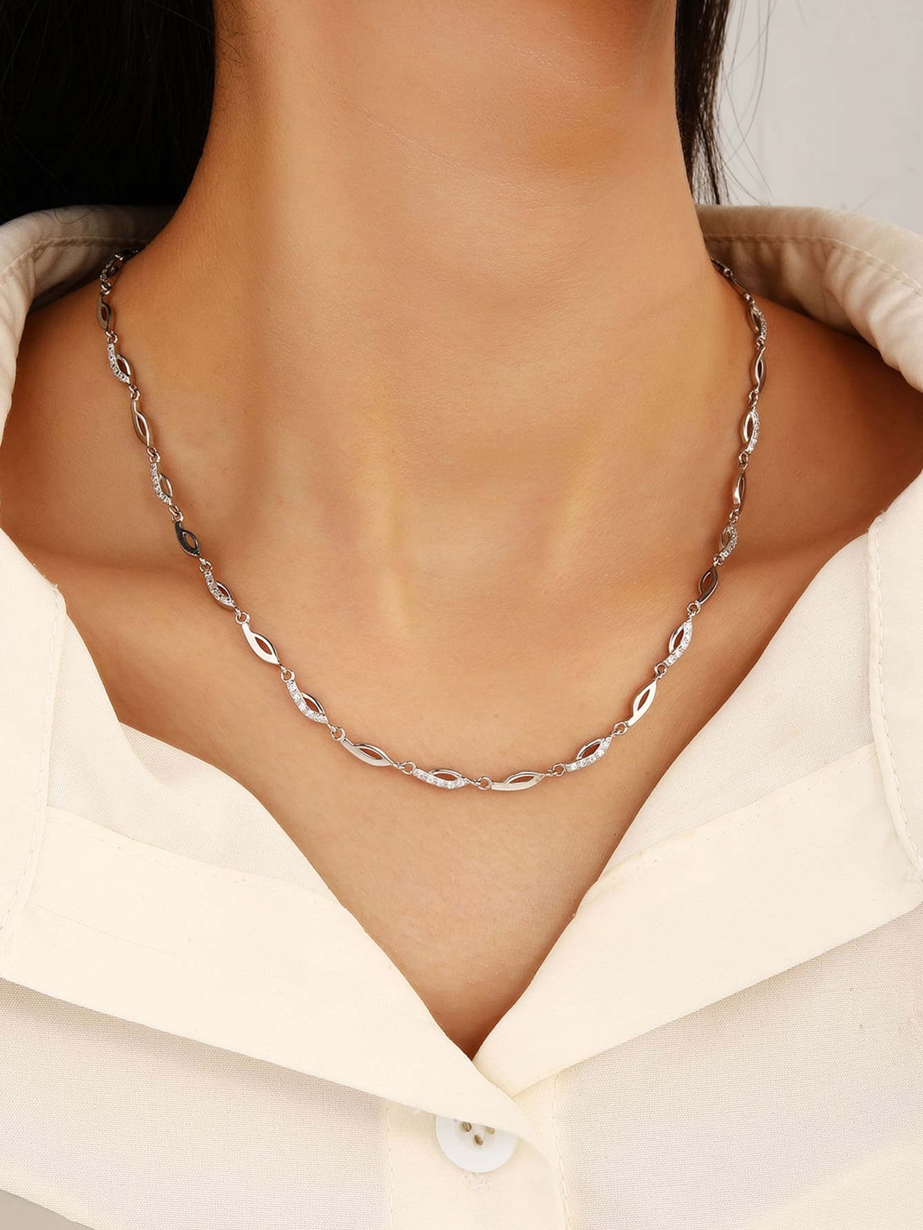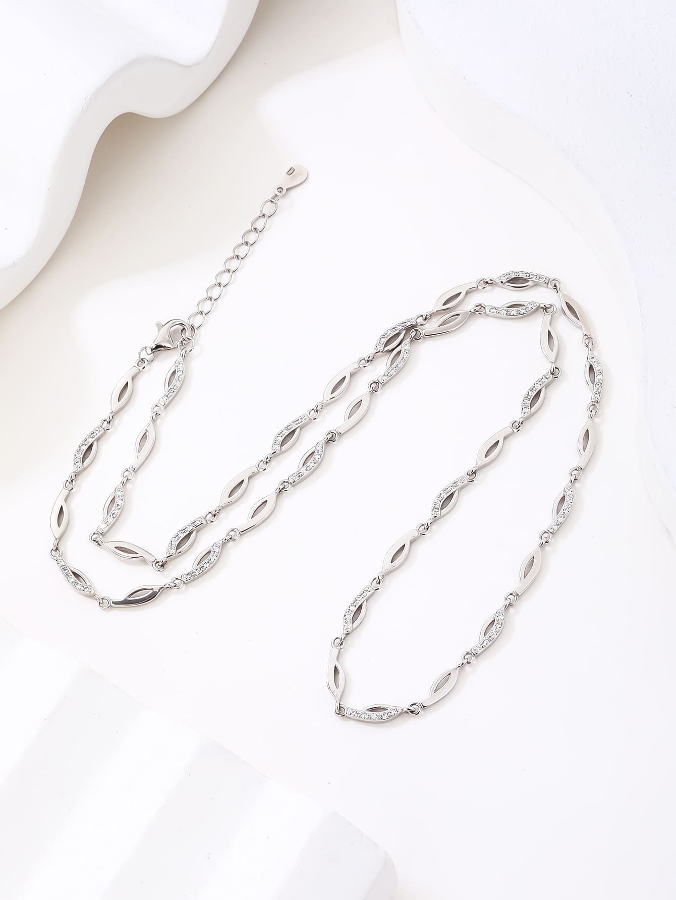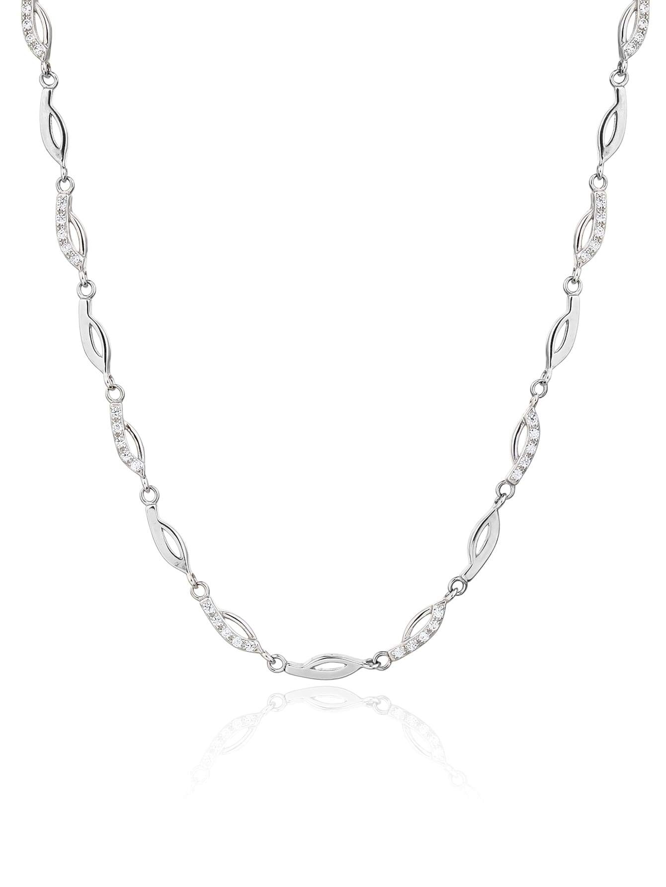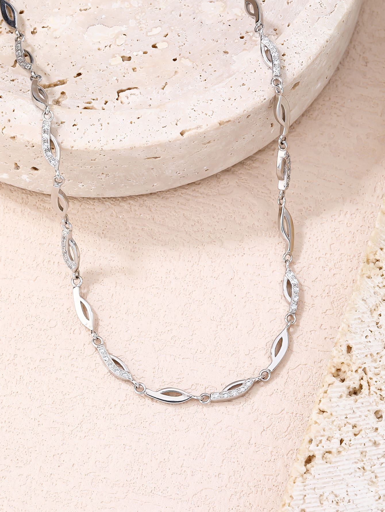 Diese Halskette mit ihrem klaren Design und dem Funkeln der winzigen weißen Zirkoniasteine ist die perfekte Wahl, wenn Sie auf der Suche nach einem einzigartigen Look sind.