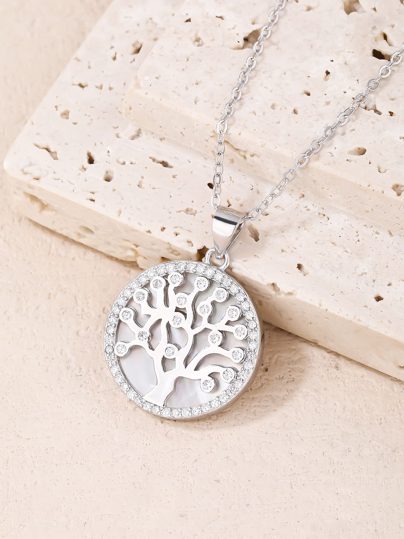 Dieser besondere Baum des Lebens-Anhänger ist ein Symbol für die Natur und das Leben. Die Basis aus 925er Silber bürgt für Qualität, während die glänzenden Zirkoniasteine und die Perlmutteinlage für zusätzliche Eleganz sorgen. Das Motiv des Lebensbaums symbolisiert die ständige Erneuerung und Kraft des Lebens.