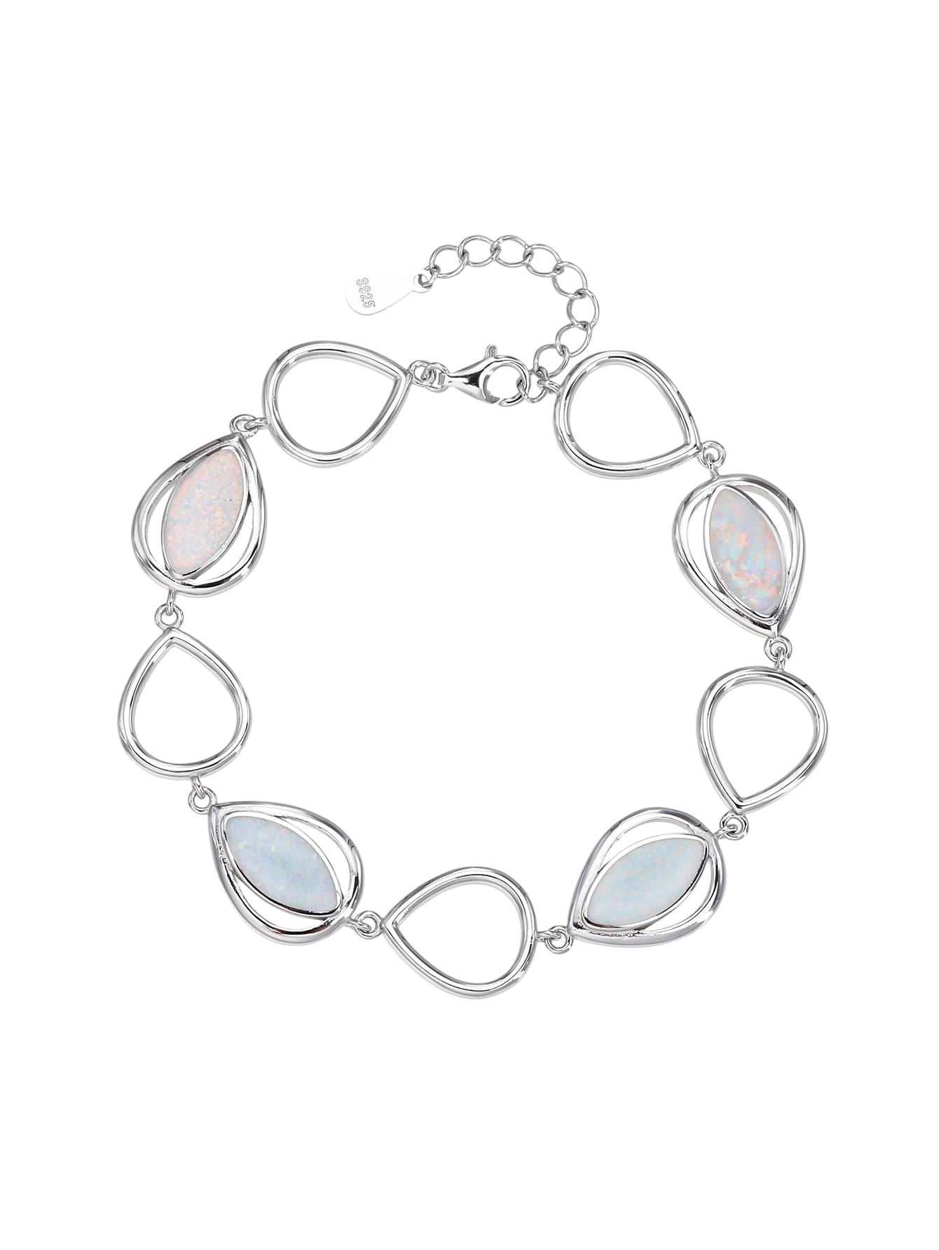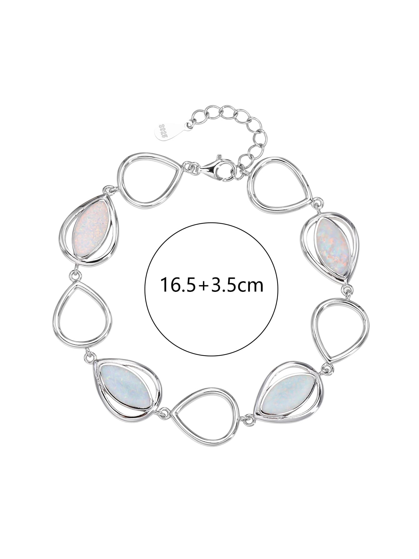 Dieses 16,5+3,5 cm lange Armband ist aus AG 925 Silber mit Rhodiumbeschichtung für Haltbarkeit und Glanz. Die in feinen Tropfenkonturen gefassten und in Navette gefassten weißen Opalsteine glänzen in einem magischen Farbenspiel und reflektieren jede Nuance des Lichts.