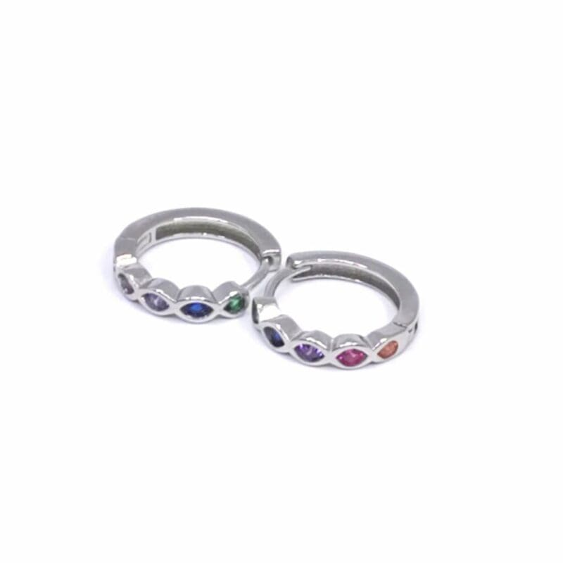 Ein Schmuckstück, das Ihre Stimmung hebt und jedes Outfit zu etwas Besonderem macht! Die Creolen sind ein ewiger Klassiker, der mit einem modernen Twist und farbenfrohen Steinen wirklich einzigartig ist. Die schillernden, farbenfrohen Steine strahlen Fröhlichkeit und Frische aus, während die silberne Fassung ihnen einen raffinierten Rahmen verleiht. Und der sichere Verschluss sorgt für einen angenehmen Tragekomfort, so dass Sie es den ganzen Tag über mit Zuversicht tragen können.
