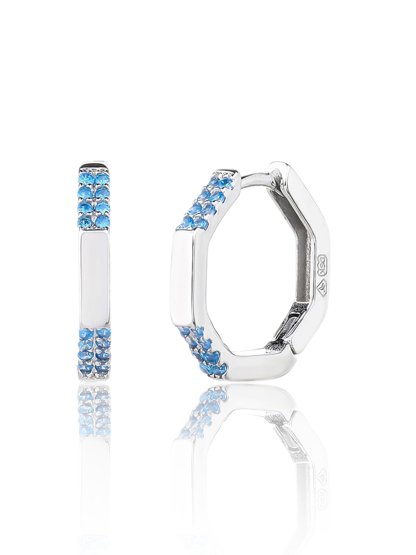 Silberne achteckige Ohrringe mit hellblauem Stein – pure Eleganz, müheloser Stil