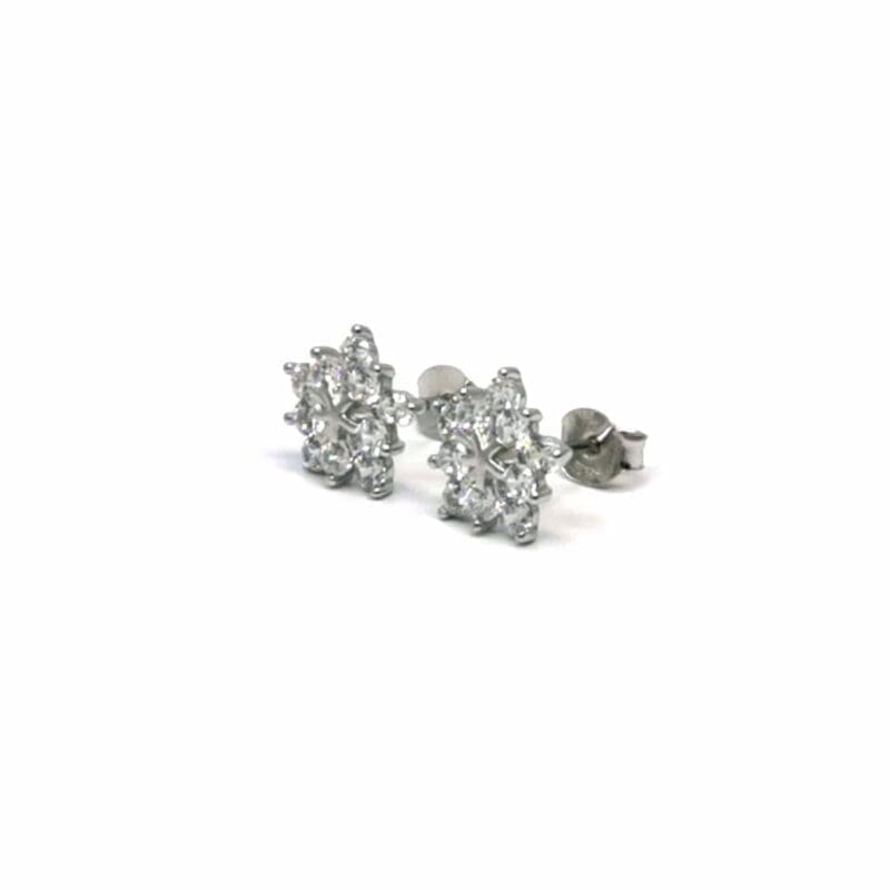 💎 Silberne Schneeflocken-Ohrringe mit weißem Stein – ein Symbol für winterlichen Glamour und Raffinesse
