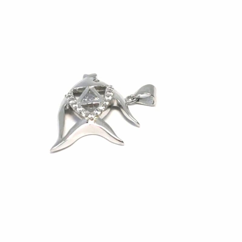 Dieser Fischanhänger der AG 925 aus Sterlingsilber ist mit seiner filigranen Verarbeitung und den funkelnden weißen Zirkoniasteinen ein Symbol für Fluss, Anpassungsfähigkeit und Wohlstand. Die Rhodiumbeschichtung verleiht dem Schmuck zusätzlichen Schutz und bewahrt ihn vor Verfärbung und Ausbleichen.