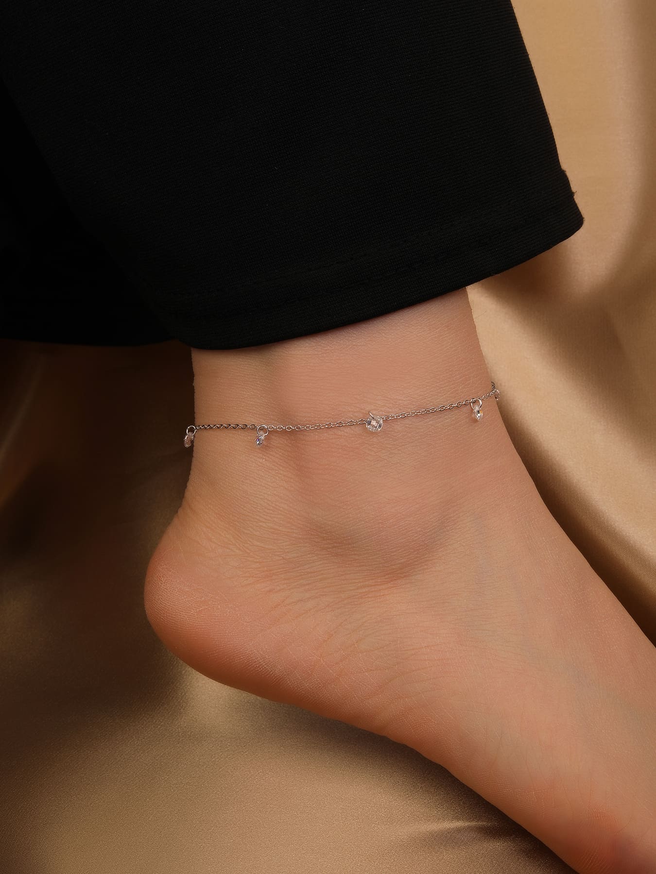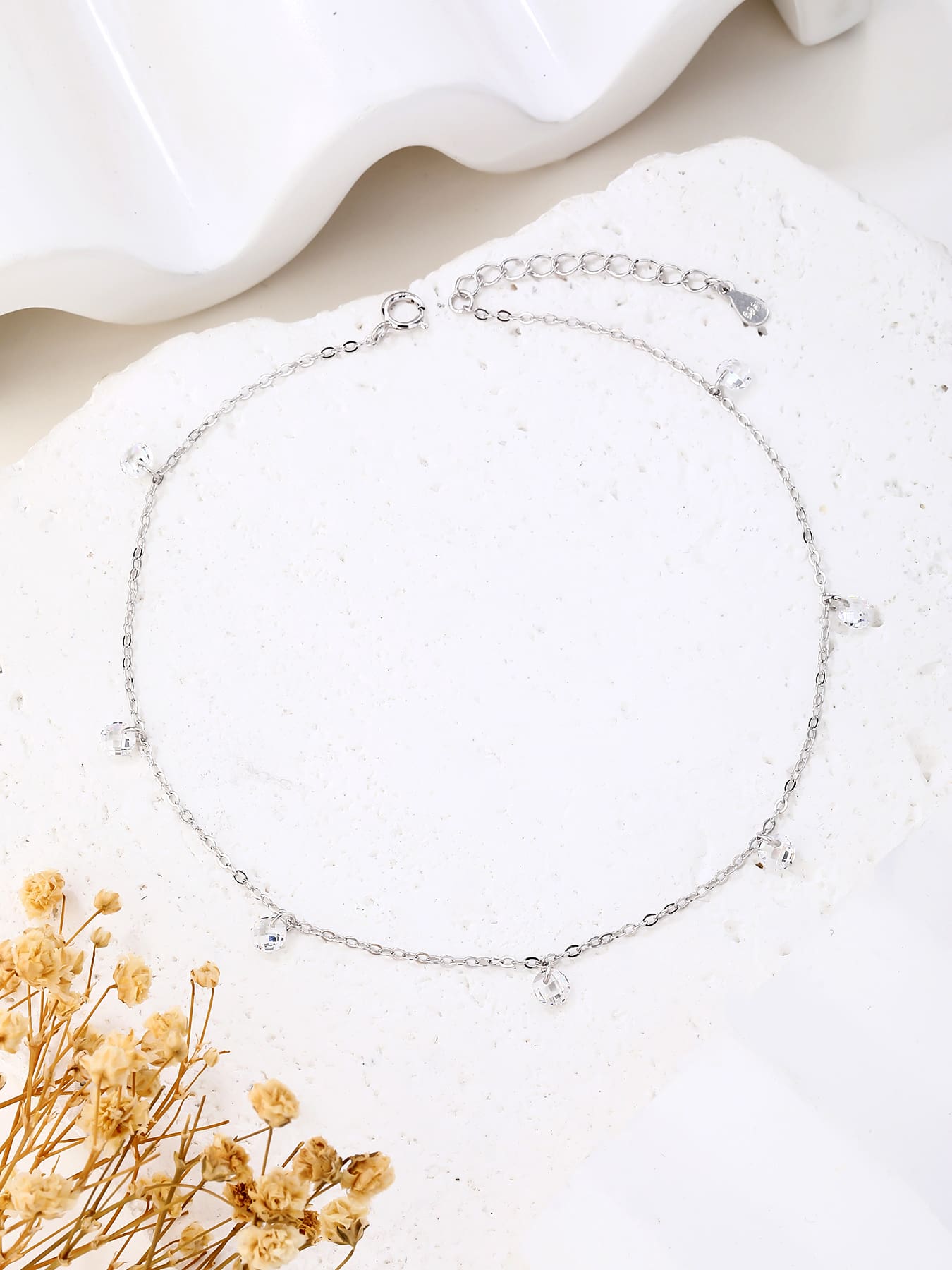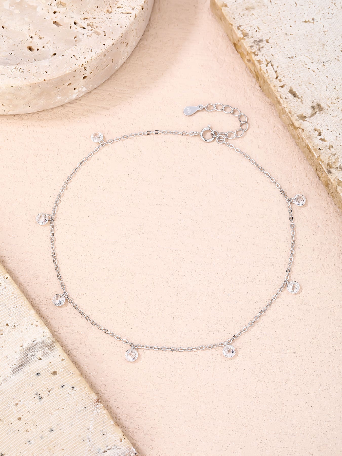 Silbernes Fußkettchen mit weißen Zirkoniasteinen – dezentes Funkeln bei jedem Schritt