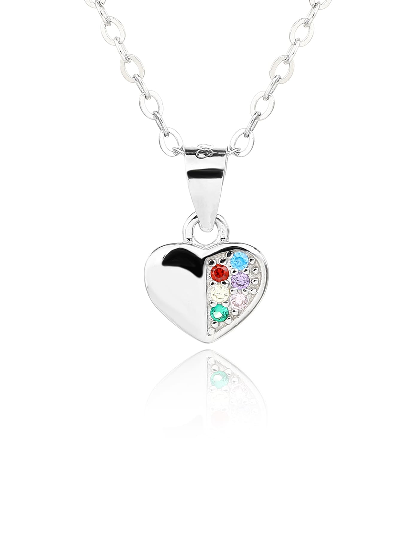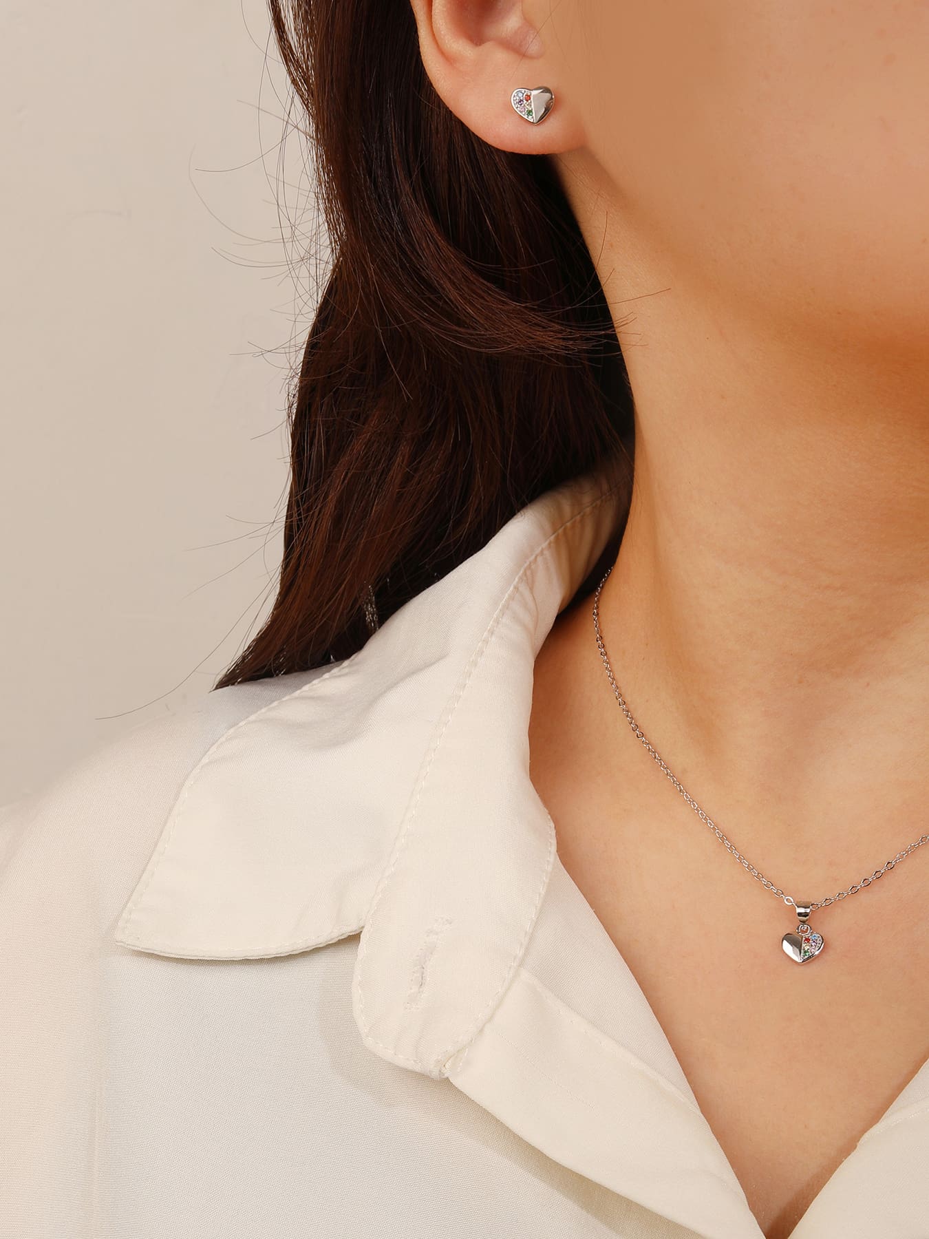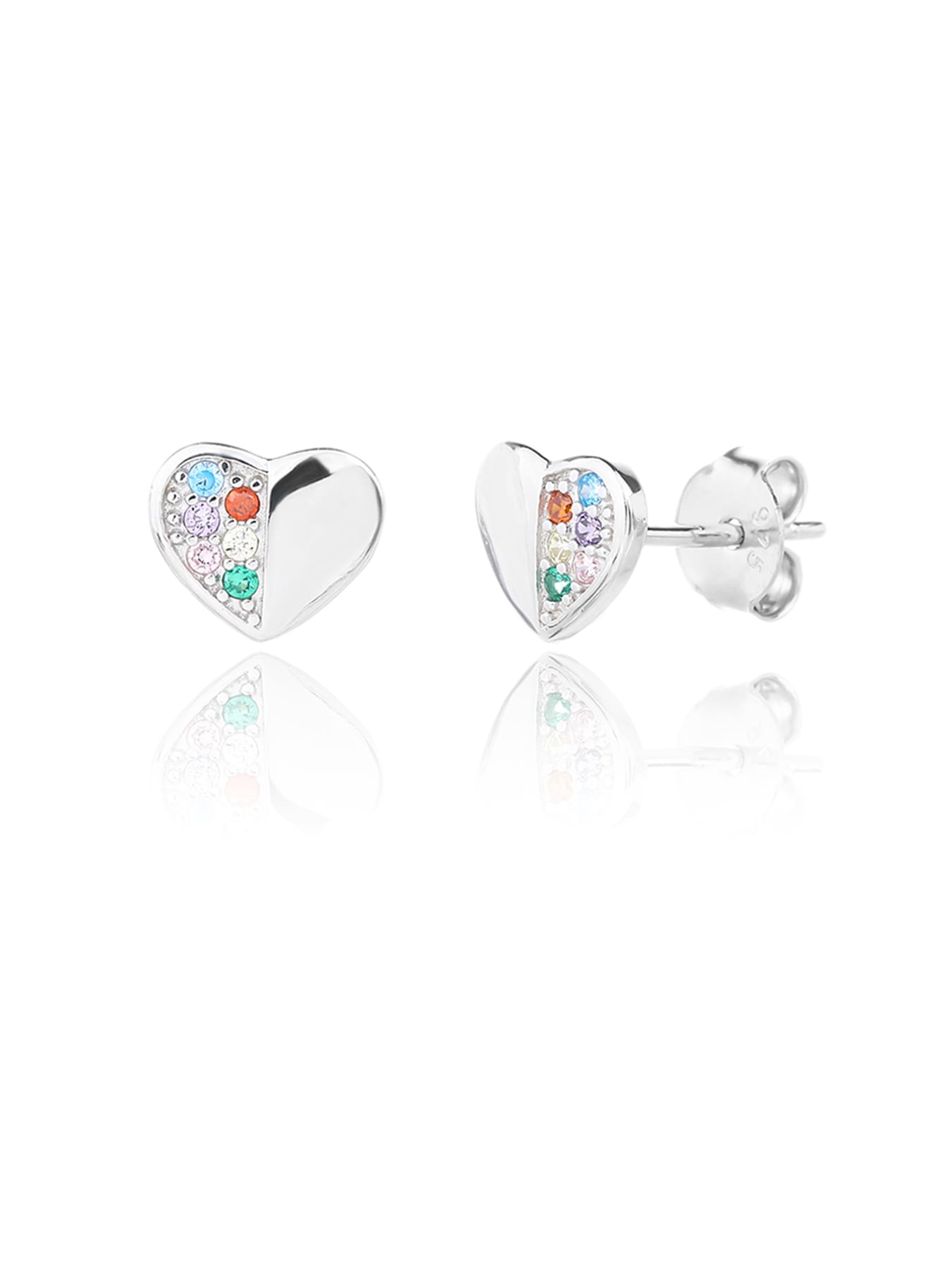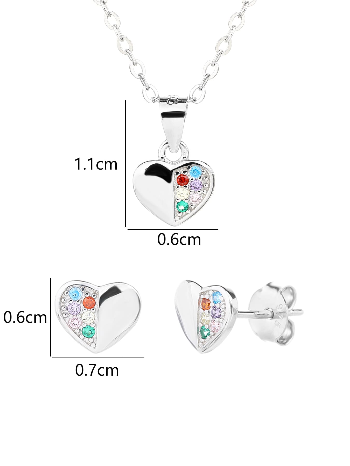 Dieses silberne Set ist für diejenigen, die gerne mit Farben spielen, aber dennoch einen eleganten Look beibehalten möchten. Die klassische Herzform ist zur einen Hälfte aus einfachem Silber und zur anderen Hälfte mit bunten Steinen verziert – eine Dichotomie, die die Vielfalt und Verschiedenheit in uns perfekt zum Ausdruck bringt. 🌸🌟