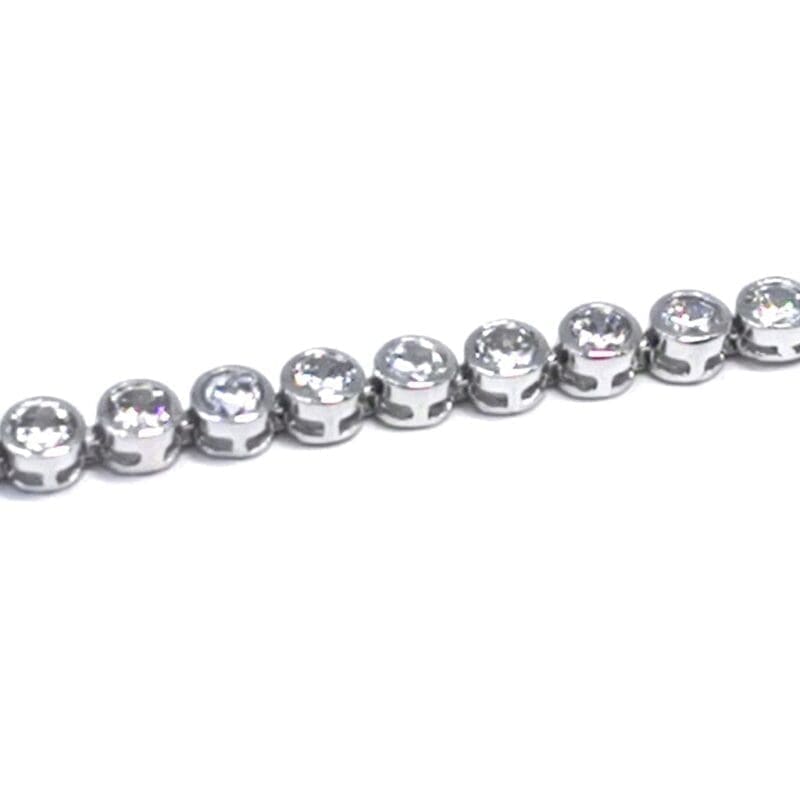 Dieses Tennisarmband aus 925er Sterlingsilber von AG ist mit länglichen, ineinandergreifenden weißen Zirkoniasteinen verziert, die dem Schmuck einen atemberaubenden Glanz und Raffinesse verleihen. Die Rhodinierung bietet zusätzlichen Schutz vor Verfärbungen und bewahrt den Glanz des Armbands über die Zeit.