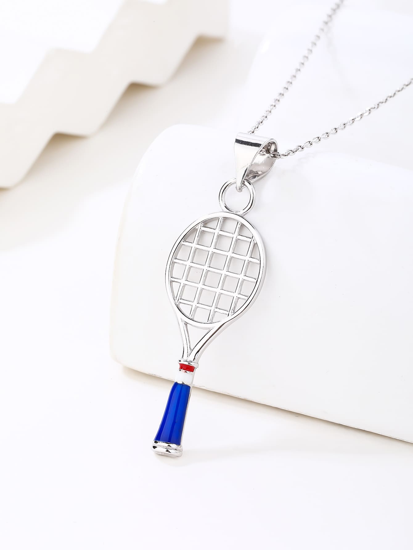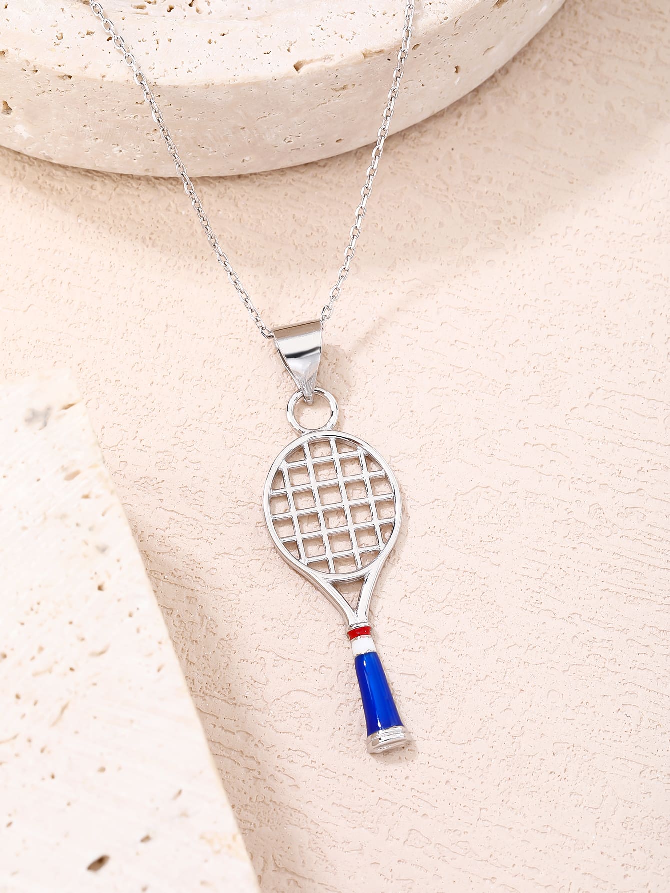 Der blau gefärbte Griff vermittelt Frische und Lebendigkeit, während das feine Silberfinish dem Anhänger einen eleganten Glanz verleiht. Ideal für das tägliche Tragen oder als Geschenk für einen Tennisliebhaber.