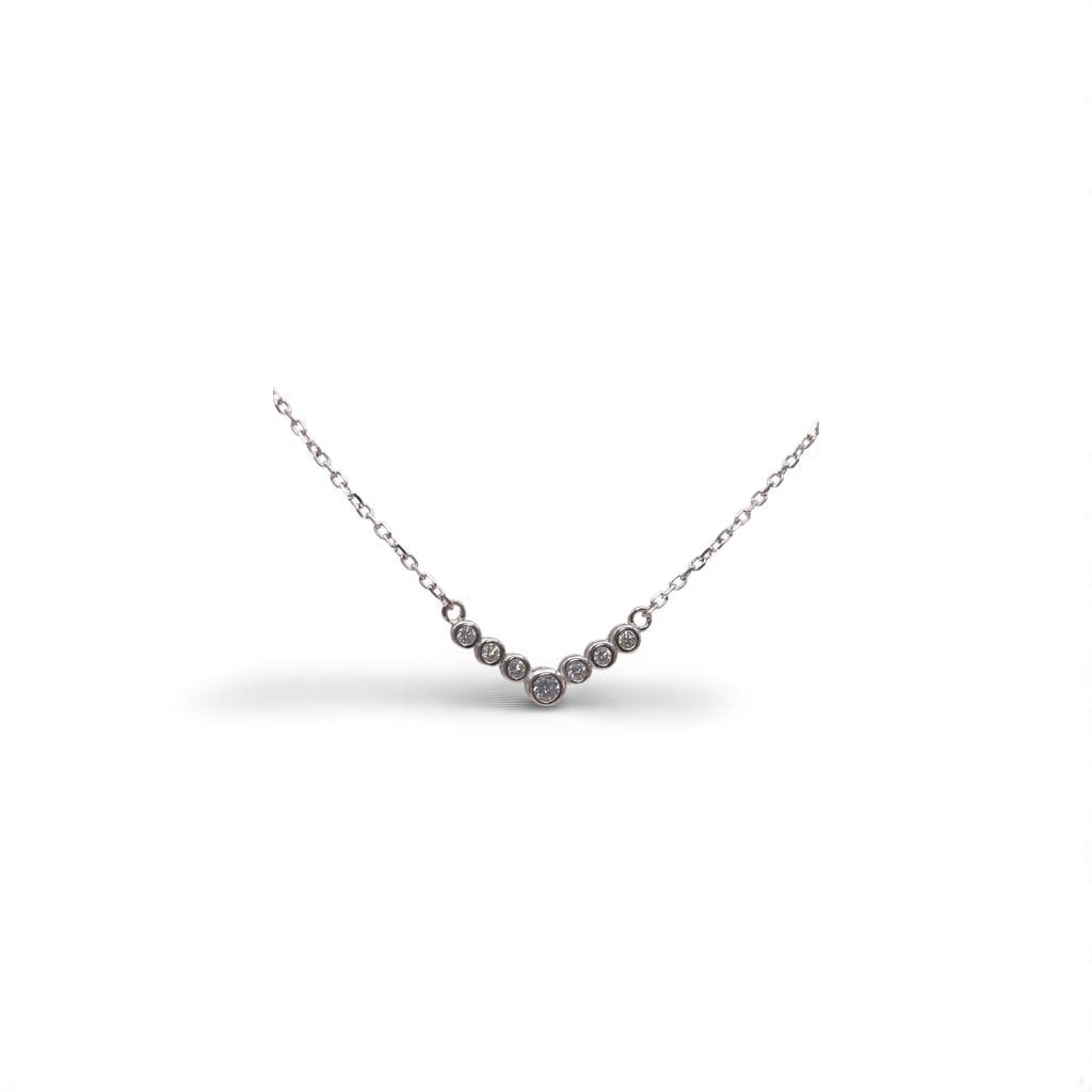 This V-shaped necklace combines classic elegance with modern simplicity. Made of AG 925 sterling silver with rhodium plating to preserve its shine and protect against discolouration. The white stones in a buton setting gently follow the curve of the V-shape, creating a brilliant overall effect that is perfect for both casual and everyday wear.