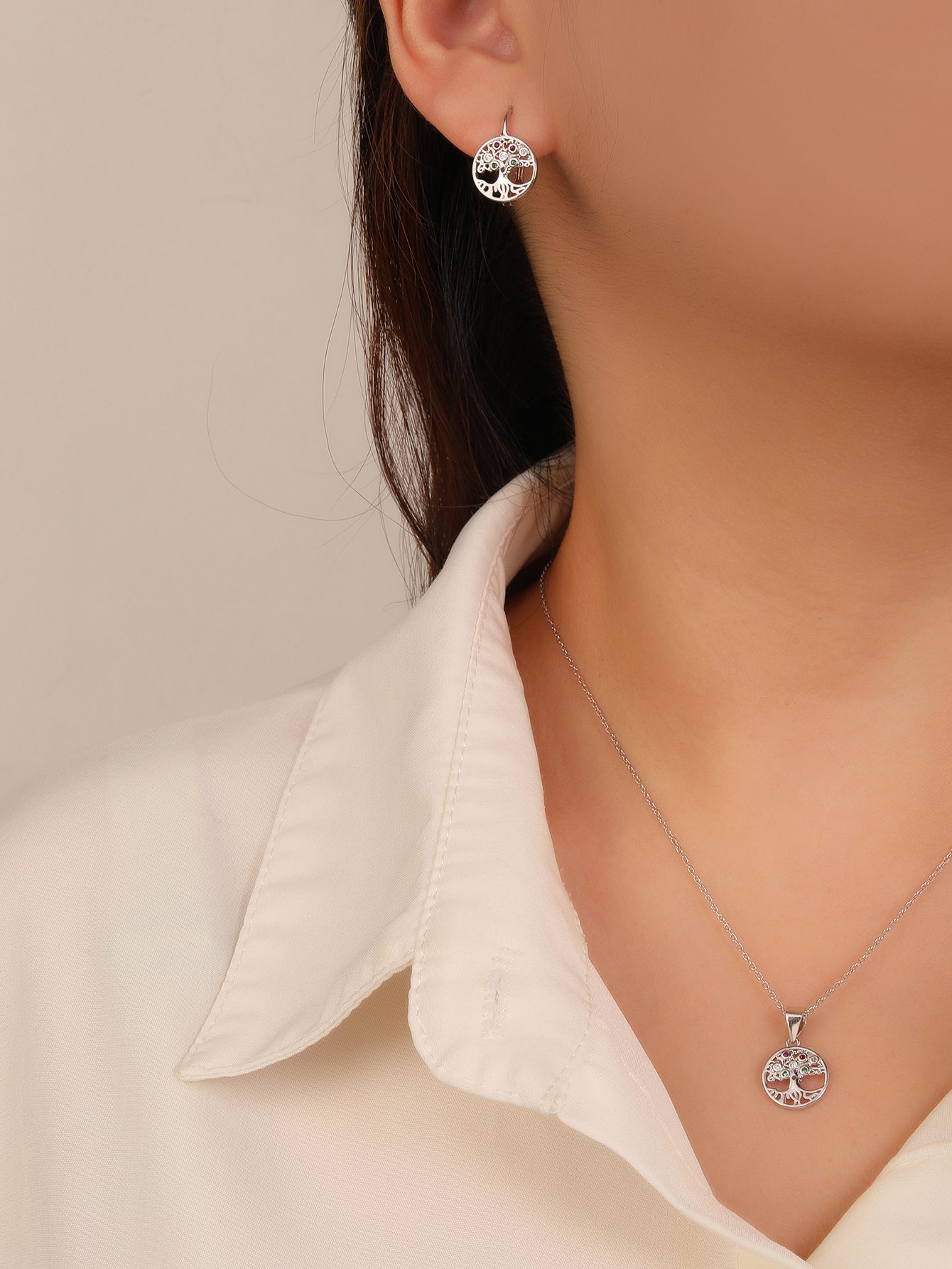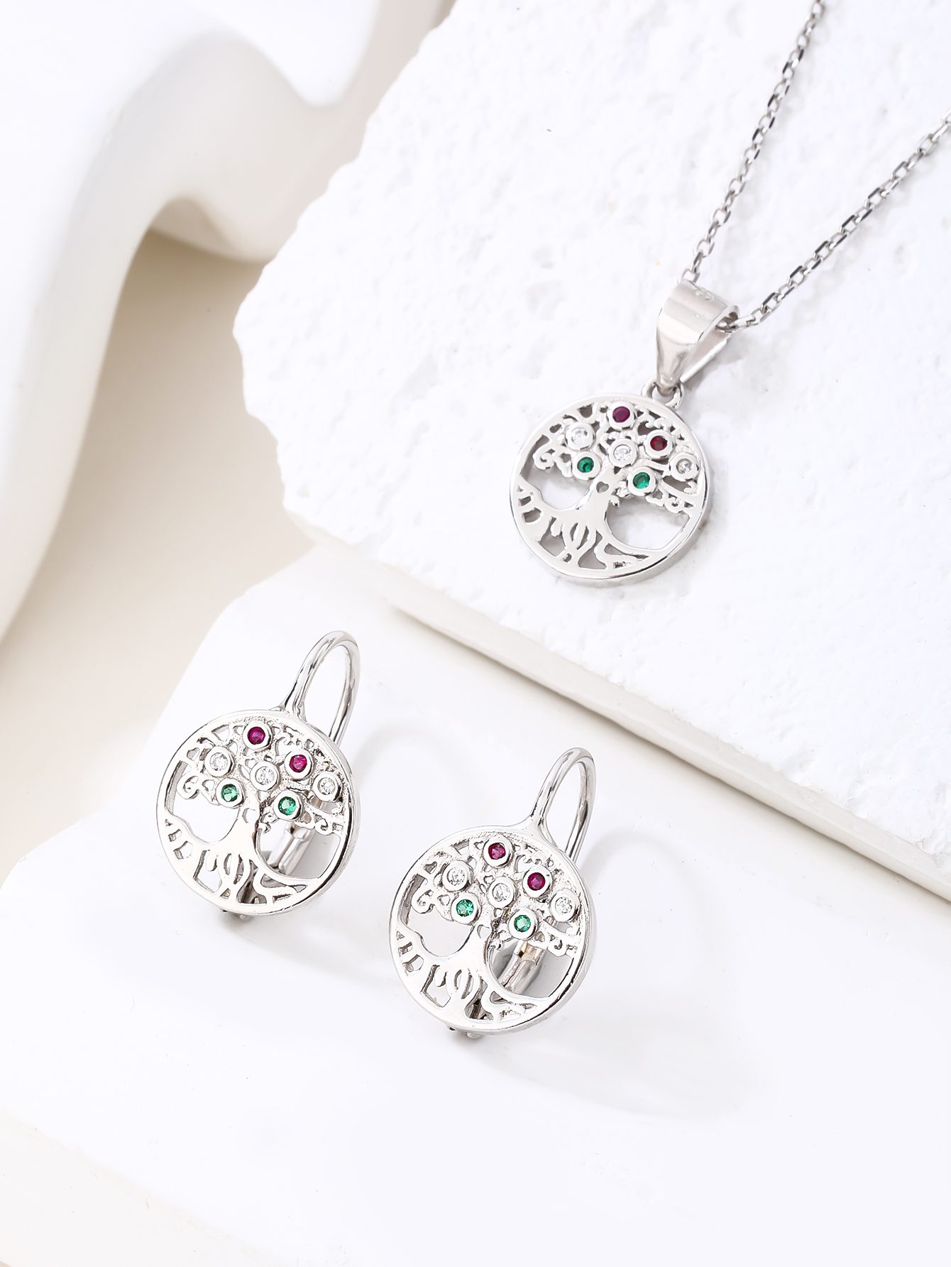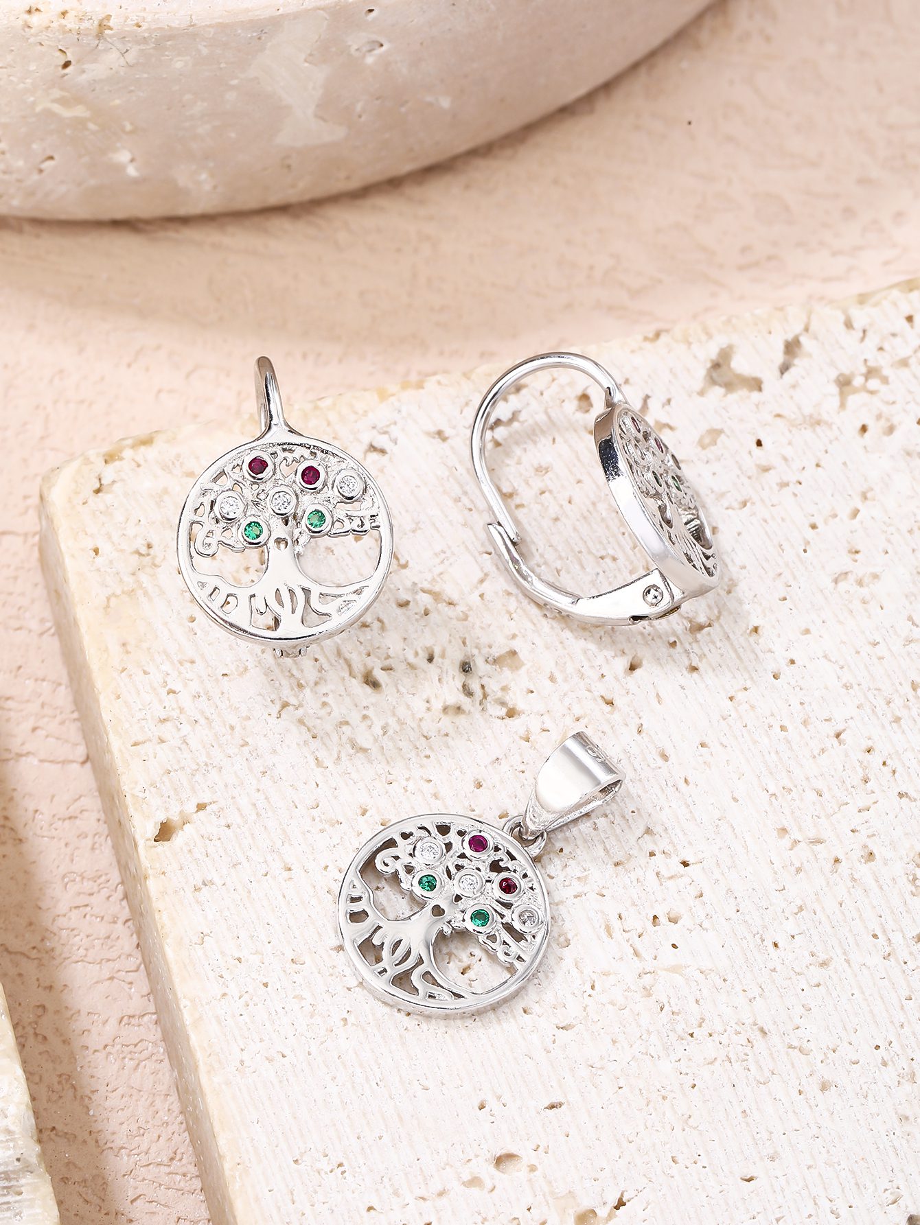 Nemzeti Fény – Trikolor Életfa medál és fülbevaló szett, AG 925, ródium bevonattal