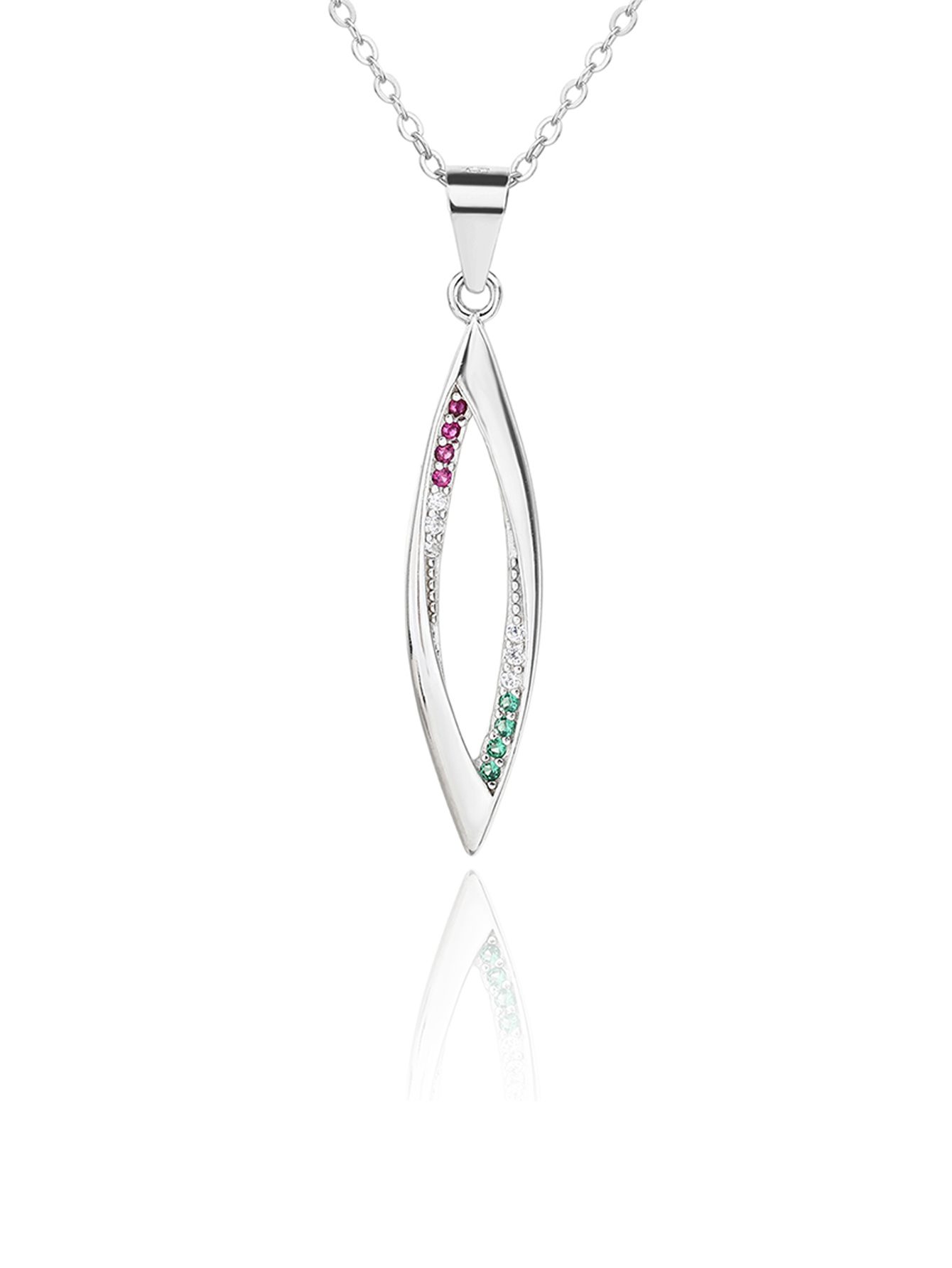 A belső íven végigfutó piros, fehér és zöld cirkónia kövek finoman követik a forma vonalát. Nem uralják a designt, hanem belesimulnak – ahogyan a hovatartozás érzése is természetes része az embernek.