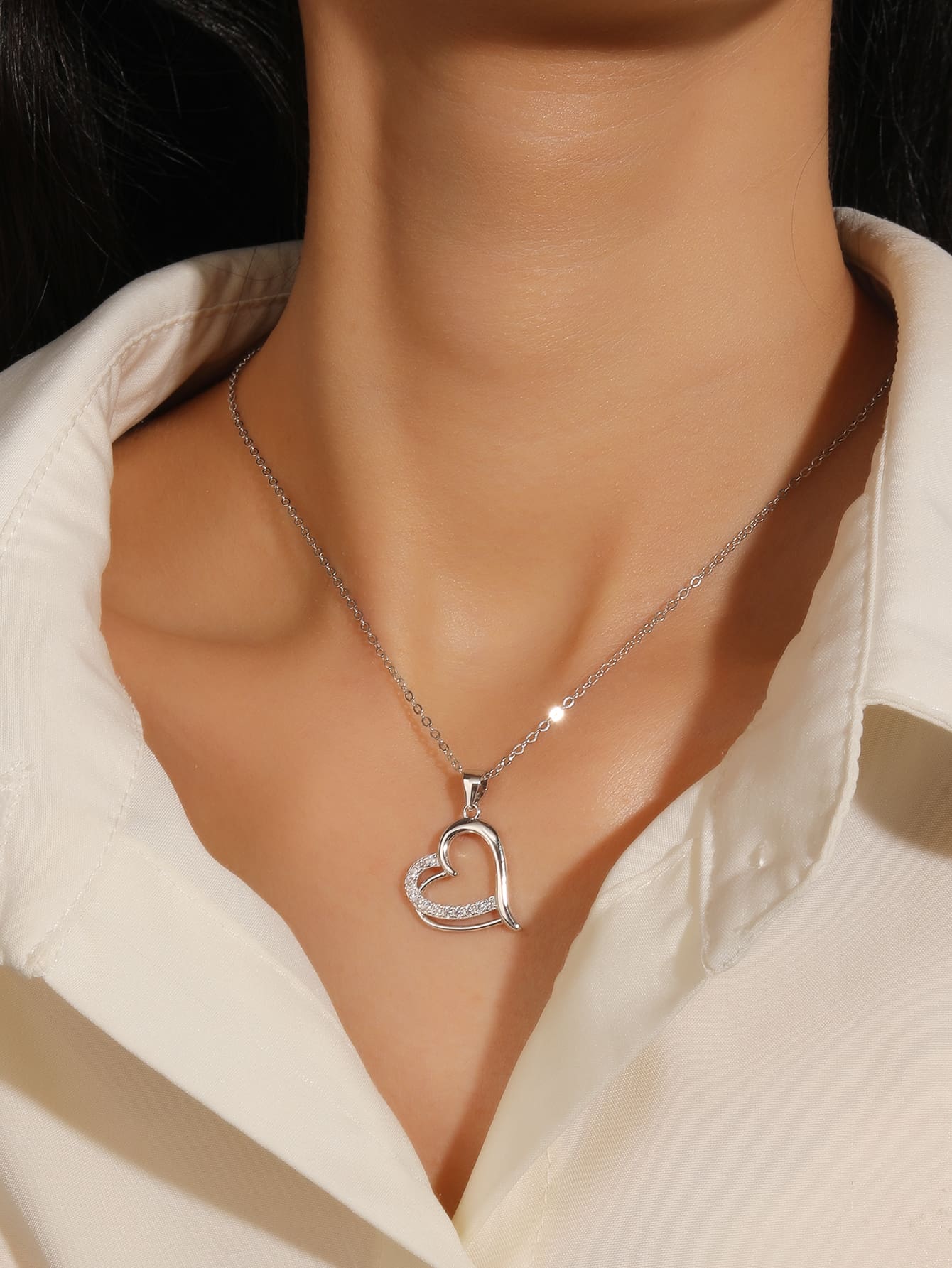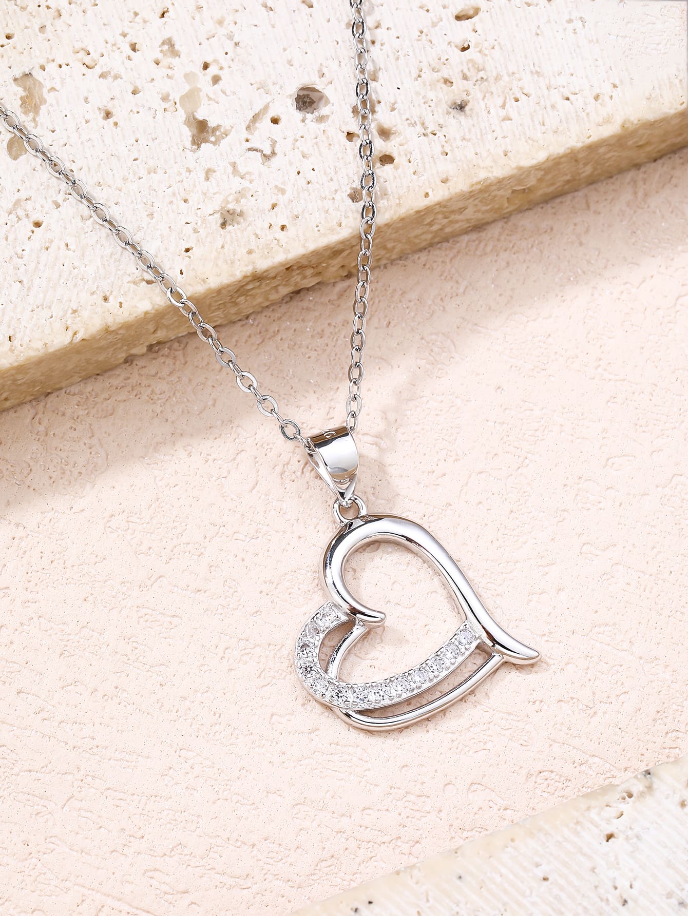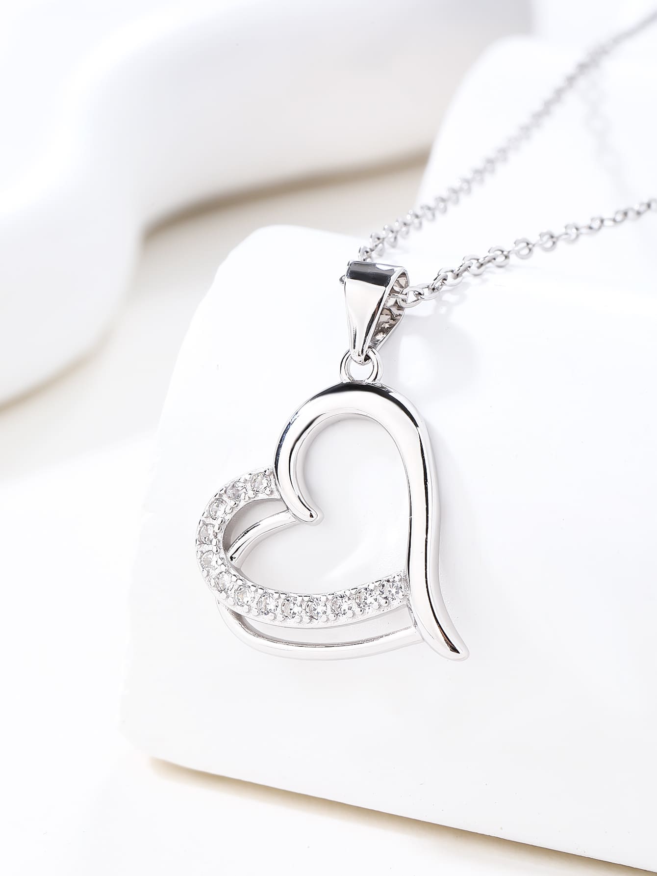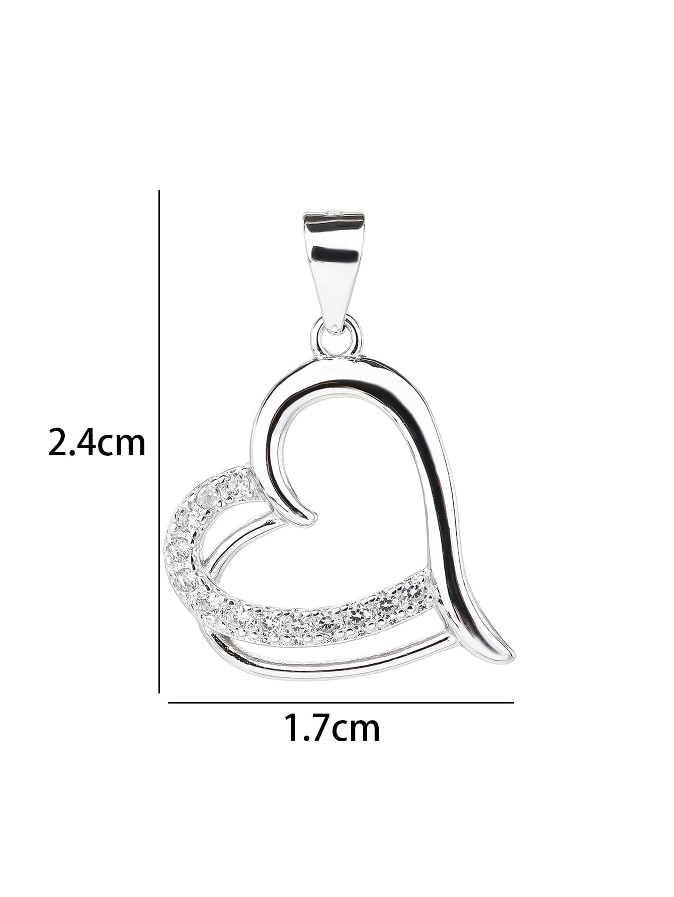 One of the arches of the heart is set with white cubic zirconia stones, with a discreet yet spectacular sparkle.