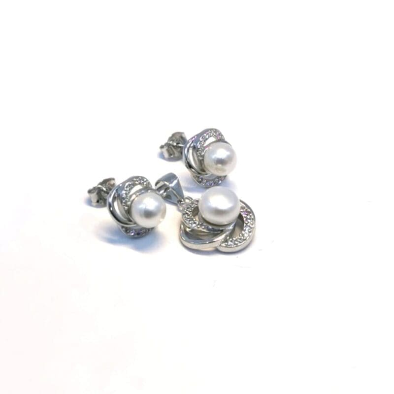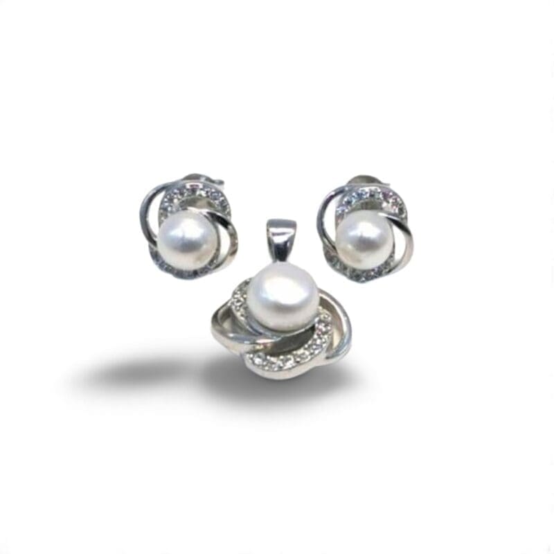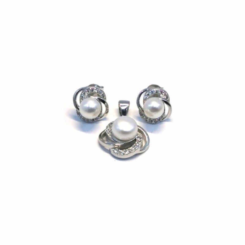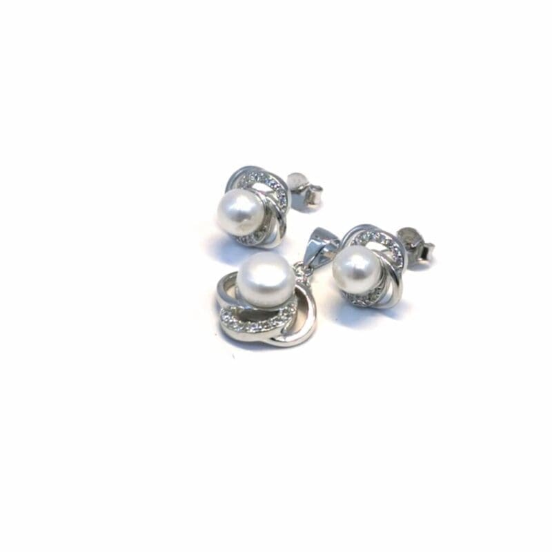 This tasteful jewellery set combines the classic charm of pearls with the subtle sparkle of white stones to make the perfect addition to any outfit. The stud earrings provide a comfortable fit, while the matching pendant adds a sophisticated sparkle.