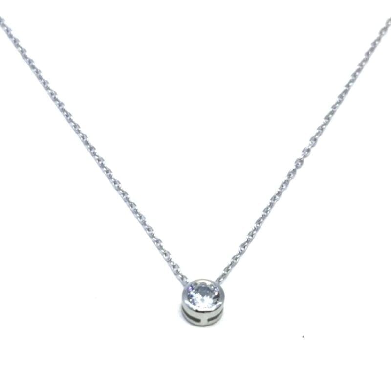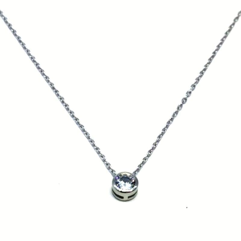 This elegant and timeless jewellery is adorned with a single brilliant cubic zirconia stone set in a button setting, enhancing the natural sparkle of the stone. The simple yet stunningly clean design is the ideal choice for those who prefer classic elegance. The necklace is made of AG 925 sterling silver, with a rhodium plating that protects against discolouration and preserves the shine of the jewellery over time.