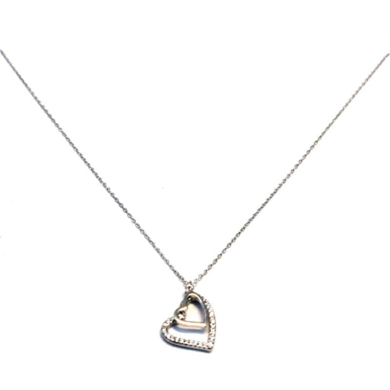 This AG 925 sterling silver necklace is delicately crafted with two interlocking heart-shaped pendants adorned with brilliant white cubic zirconia stones. The symbolism of hearts represents strong emotions, loyalty and deep attachment. The rhodium coating ensures durability and long-lasting shine.