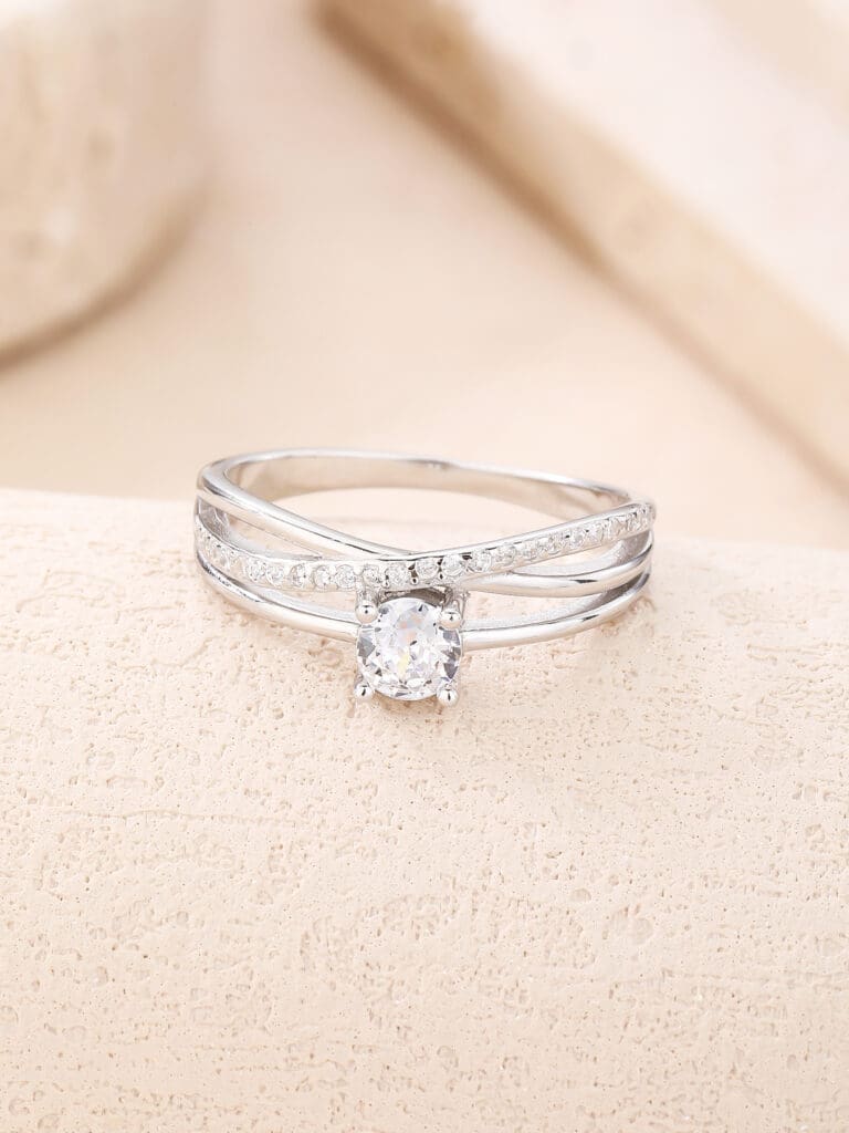 Silver engagement solitaire ring with white cubic zirconia stone – the jewel of the perfect moment