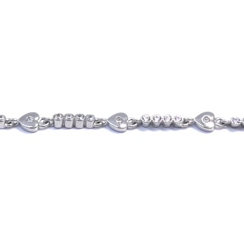 This AG 925 sterling silver bracelet features a unique button style decoration and heart motif, a timeless symbol of love and emotion. The white cubic zirconia stones gently sparkle, while the rhodium plating provides long-lasting shine and protection.