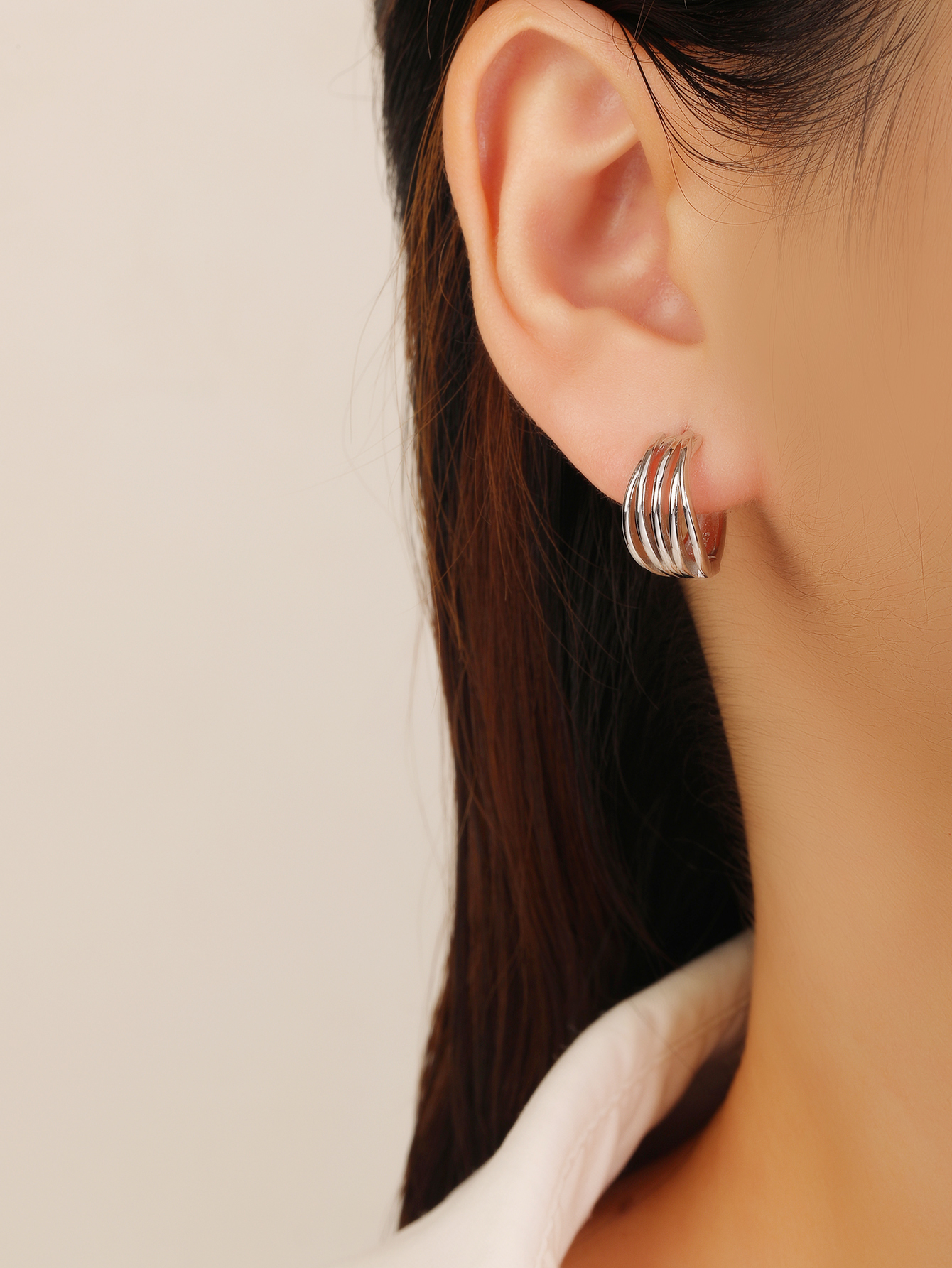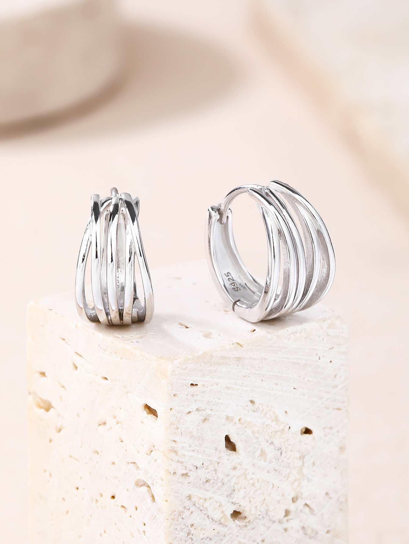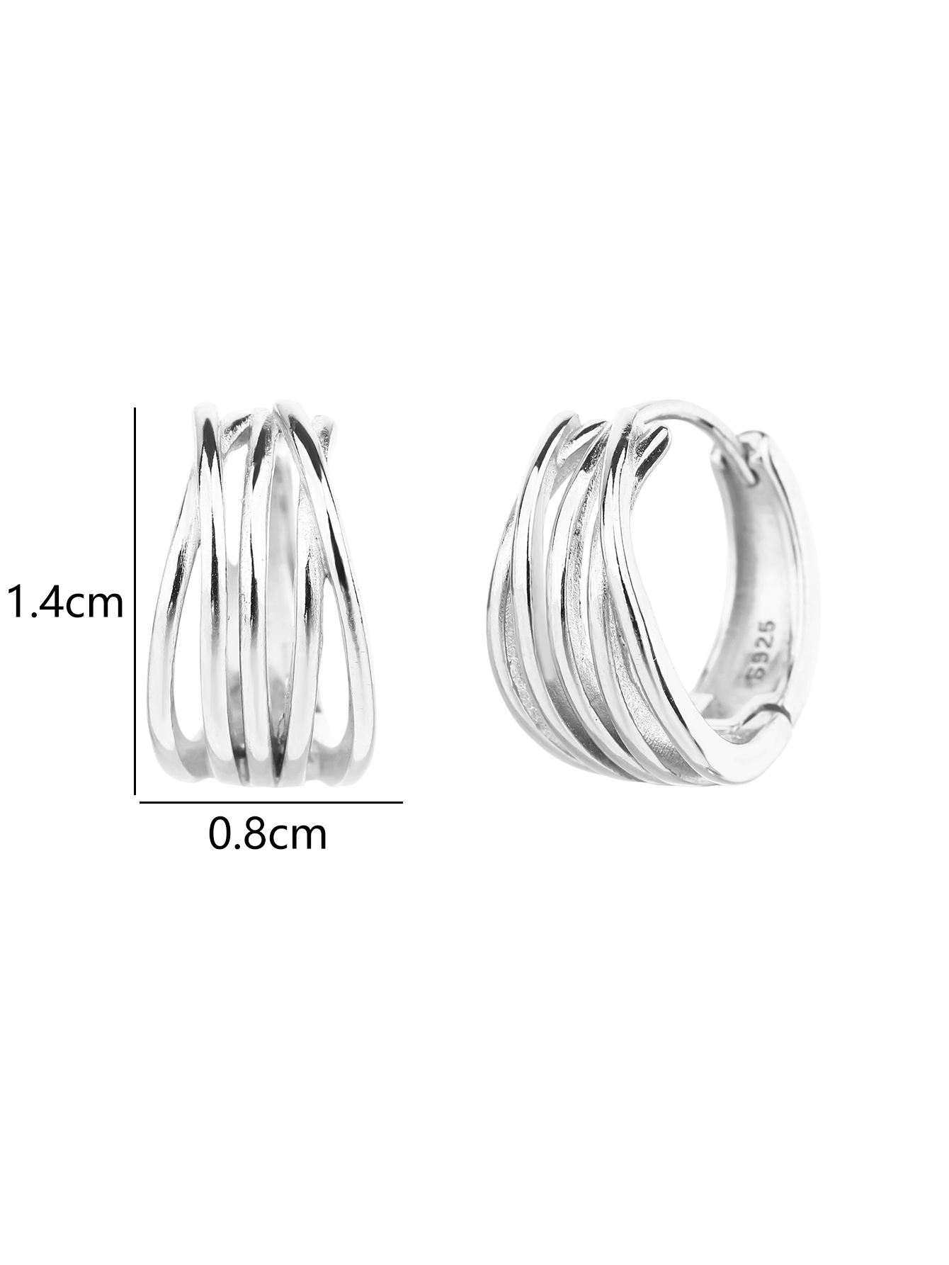 This special fantasy hoop earring catches the eye with its play of multi-line lines. Its stone-free design suggests both understatement and modern elegance, making it an ideal choice for everyday and casual looks.