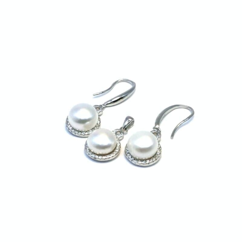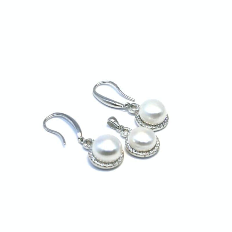This delicately crafted earring combines the classic beauty of pearls, the sparkle of white stones and the elegant movement of a dangle design. The perfect accessory for both everyday wear and elegant occasions.