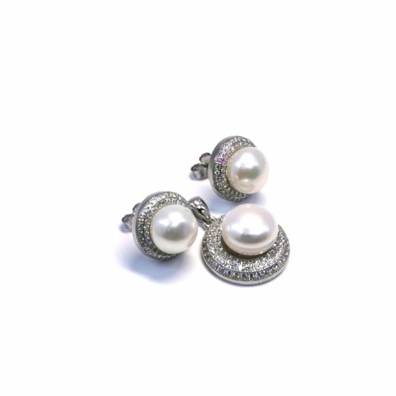 This beautiful piece of jewellery combines the classic charm of pearls with the subtle sparkle of white stones. The stekkers design and the delicate movement of the pendant provide a modern yet sophisticated style.
