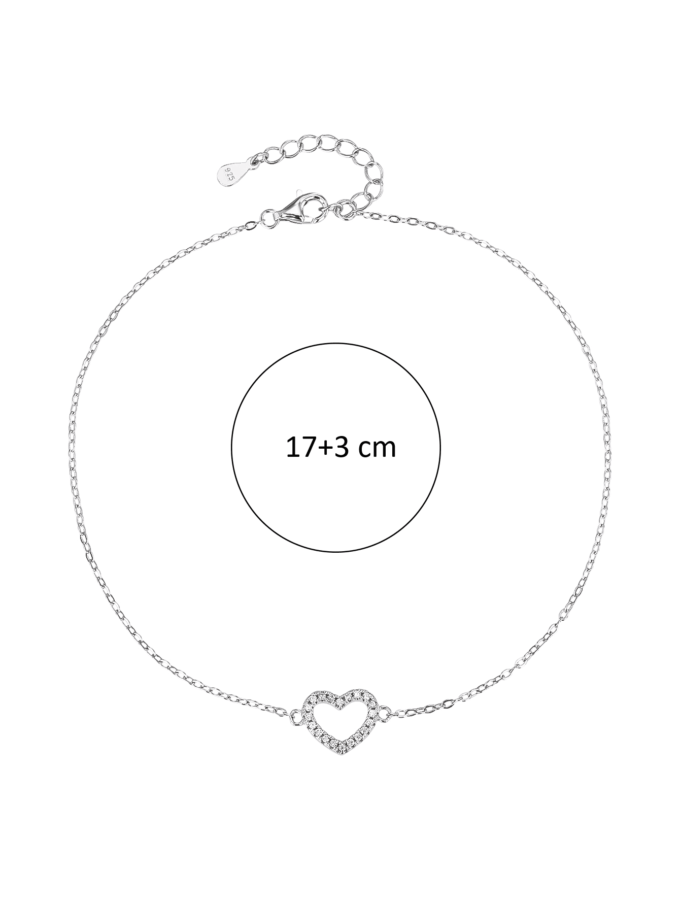 The bracelet is made of AG 925 sterling silver with a shiny rhodium plating that preserves the shine of the jewellery and protects it against discolouration. The adjustable length of 17+3 cm ensures comfortable wear, so it fits all wrist sizes perfectly.