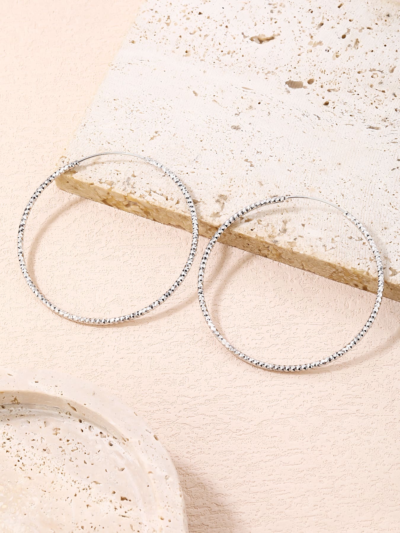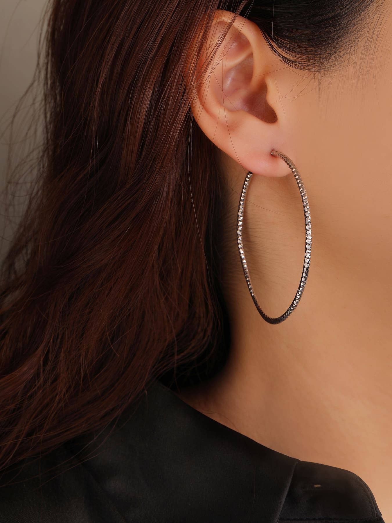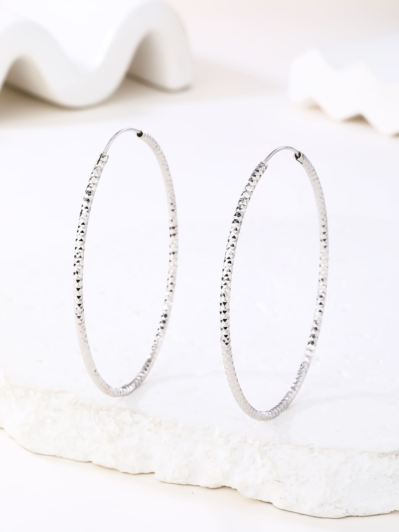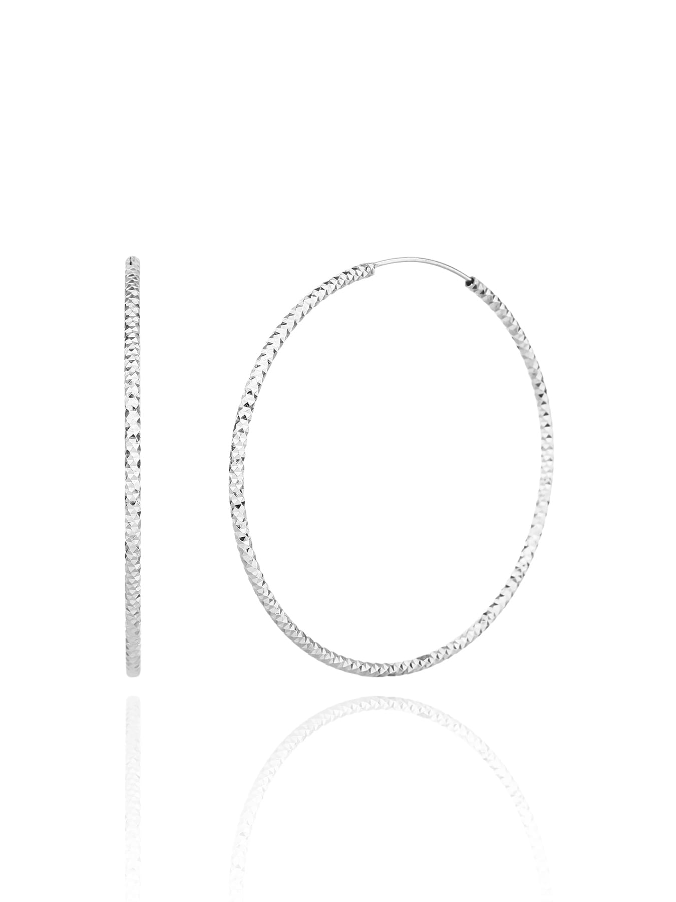 Látványos, 5,5 cm átmérőjű karika fülbevaló gyémánt vésett felülettel, amely minden mozdulatnál ragyogó csillogást sugároz. ✨