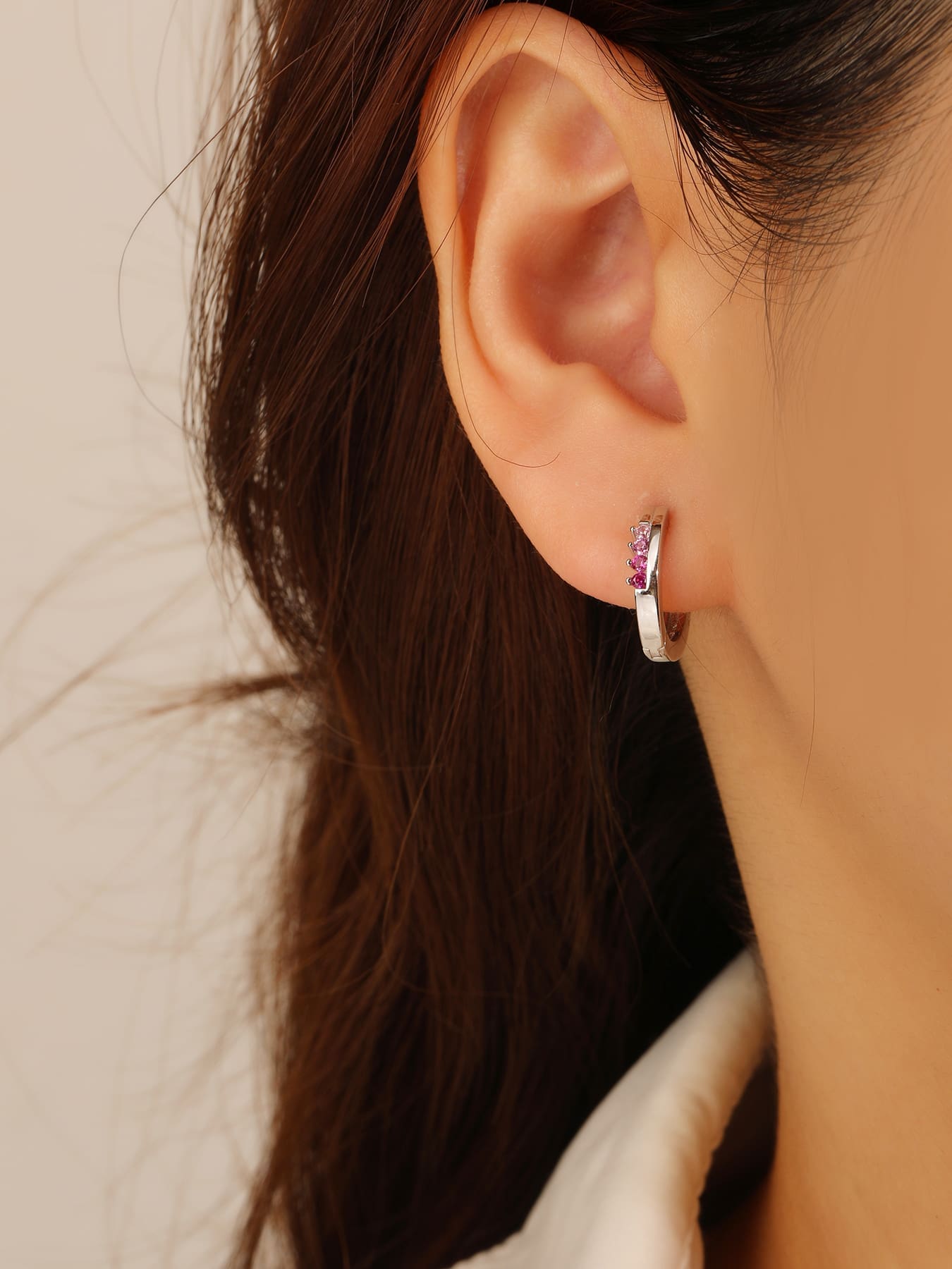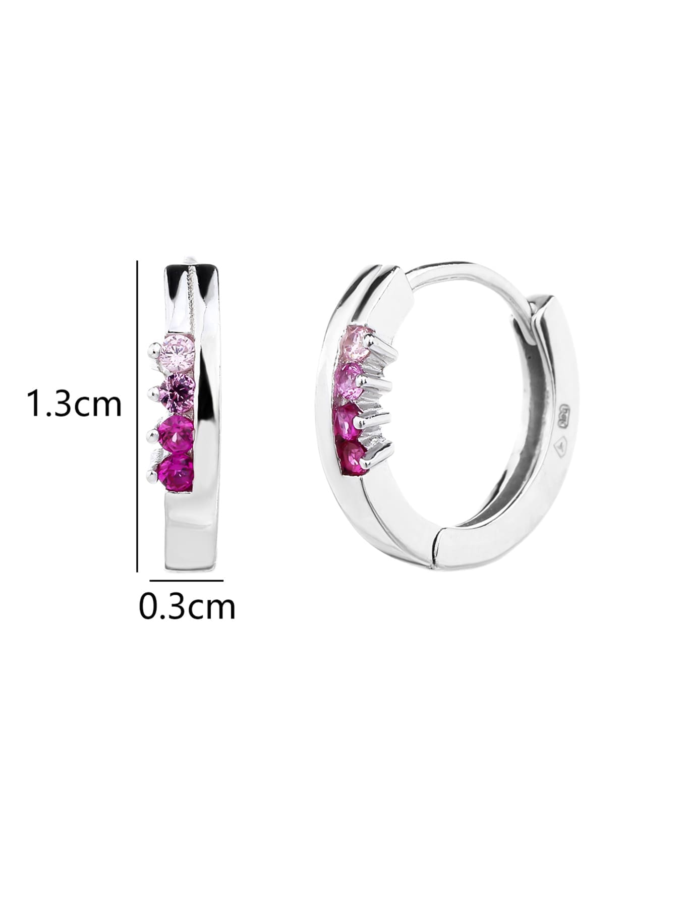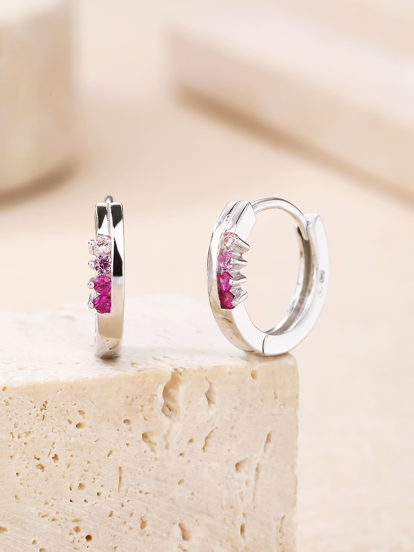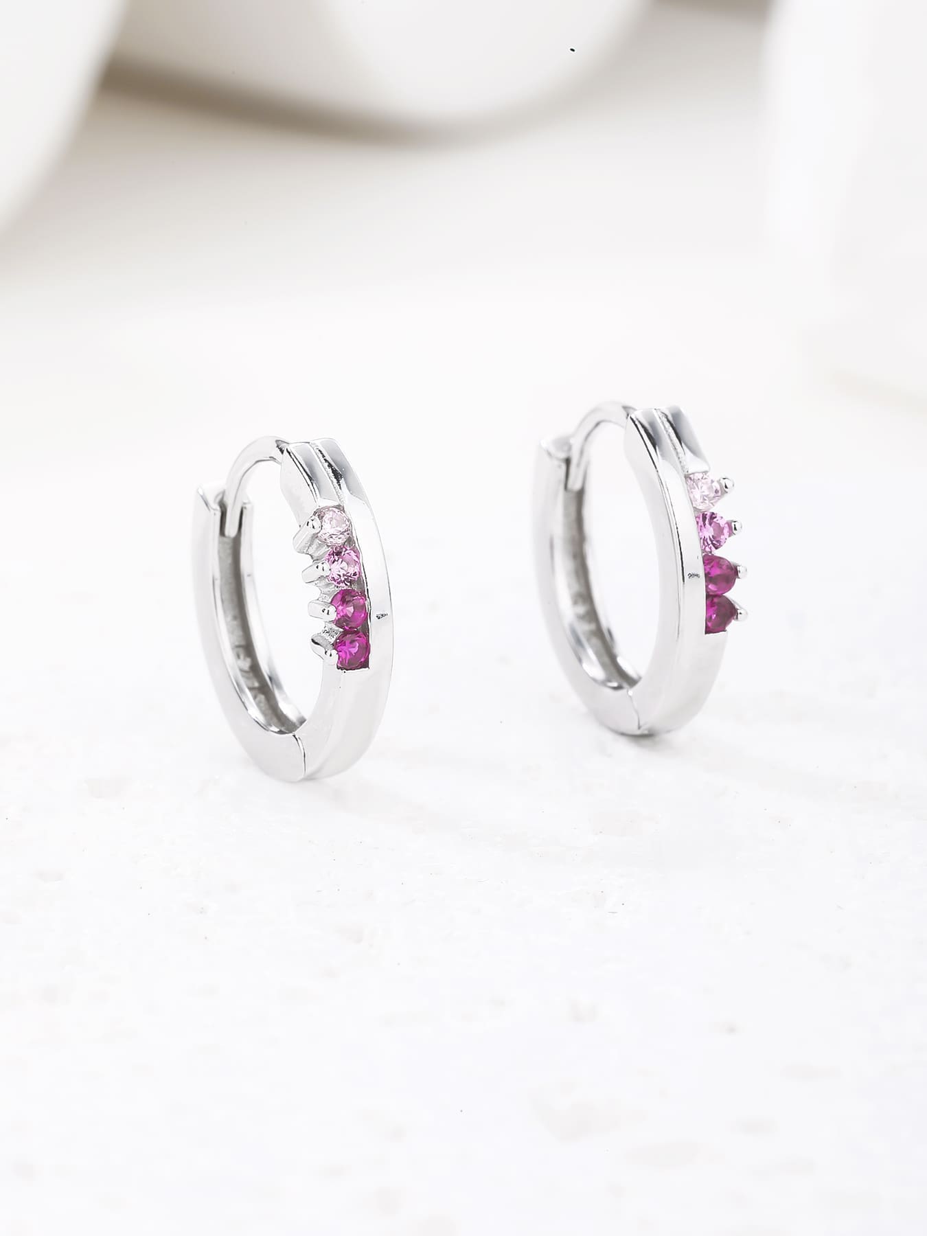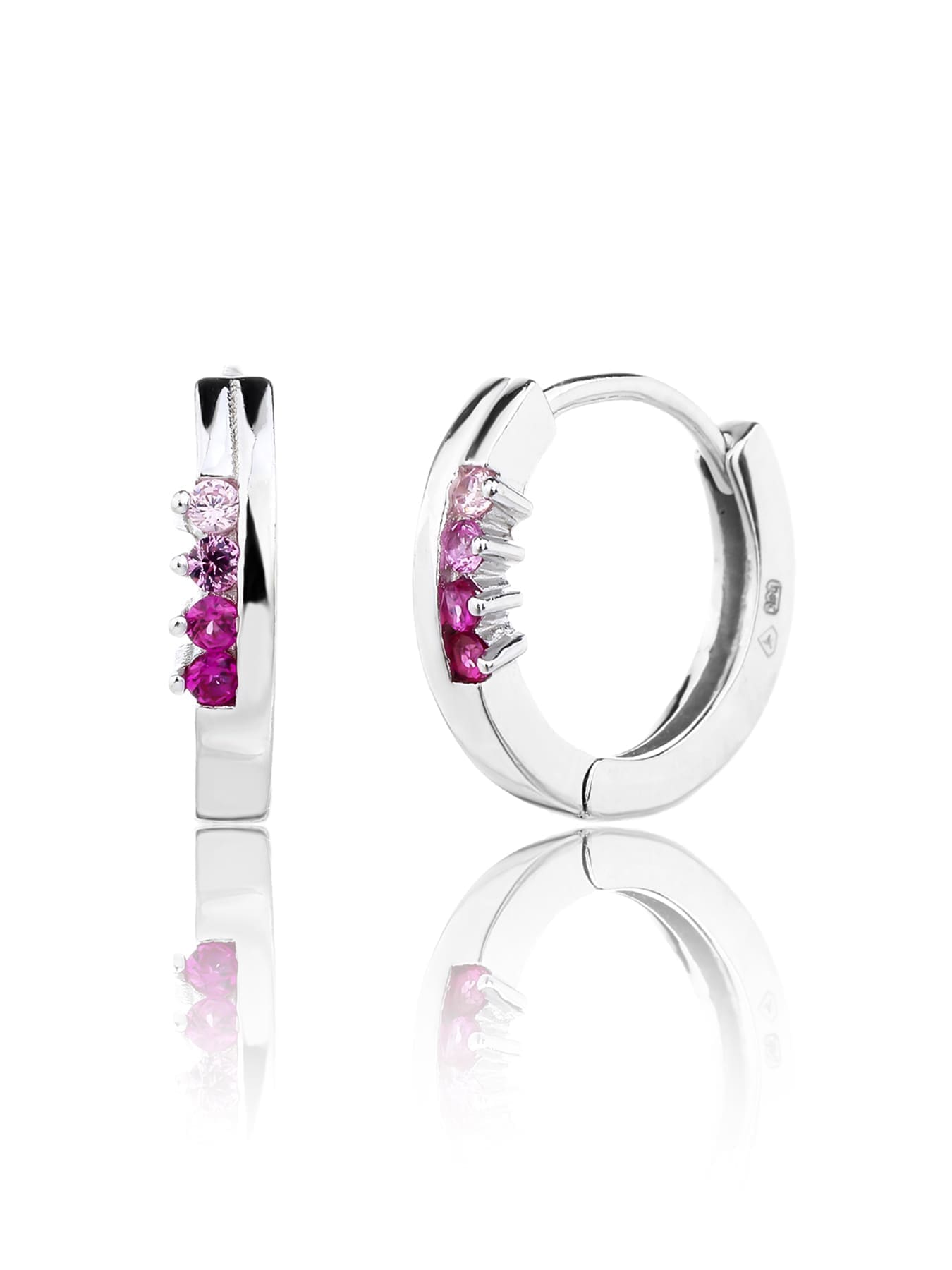 Ezüst pink – piros és rózsaszín cirkónia köves karika fülbevaló – romantikus stílus modern kivitelben