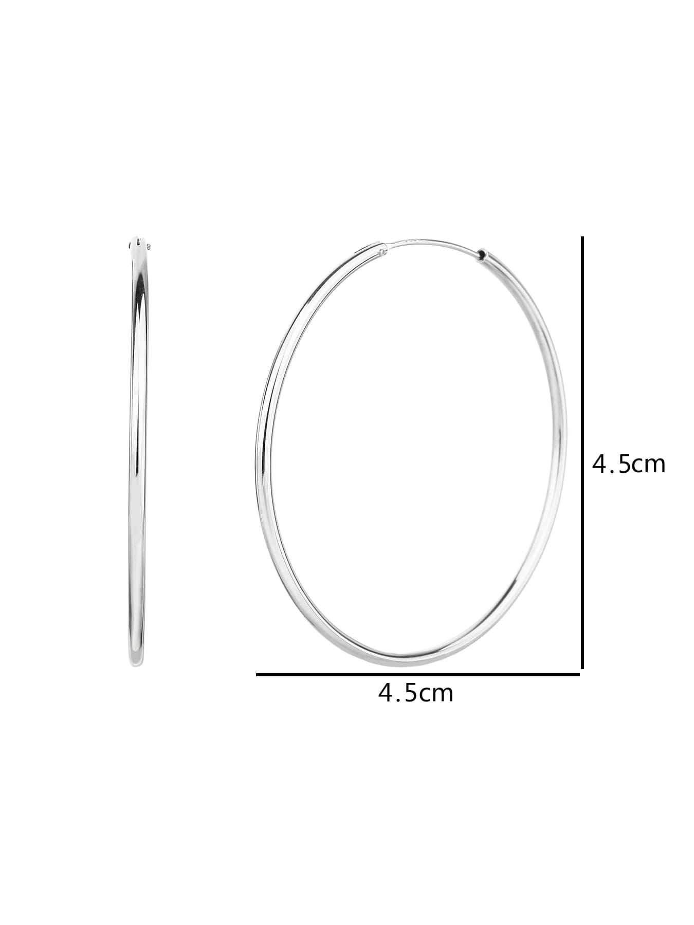 Ez a nagy méretű karika fülbevaló a letisztult vonalairól és elegáns egyszerűségéről ismert. Kő nélküli kialakítása időtlen stílust képvisel, amely bármilyen alkalomhoz tökéletesen illik – legyen szó mindennapi viseletről vagy elegáns esti megjelenésről.